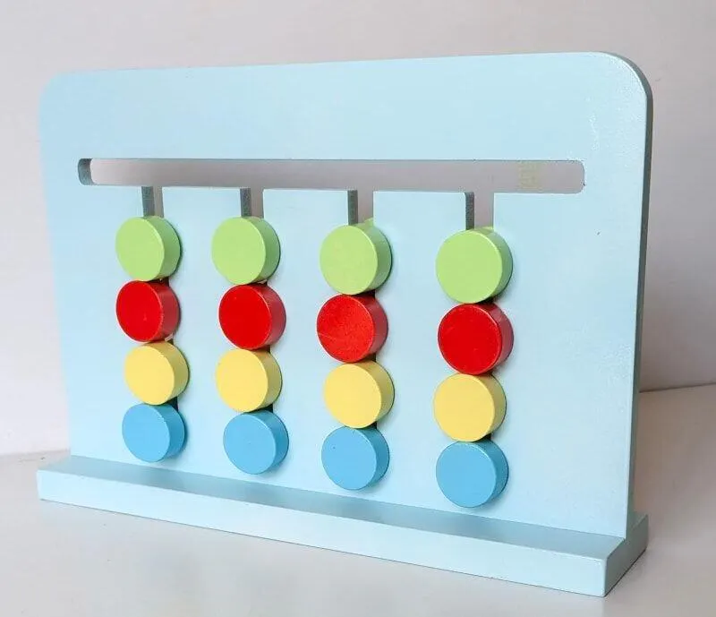 Encourage critical thinking and hands-on learning with this engaging Montessori Slide Puzzle for toddlers. Designed with a sturdy wooden frame and colorful movable circles, this wooden sliding tile puzzle challenges children to rearrange each piece by sliding them horizontally or vertically into the empty space to form the correct pattern.